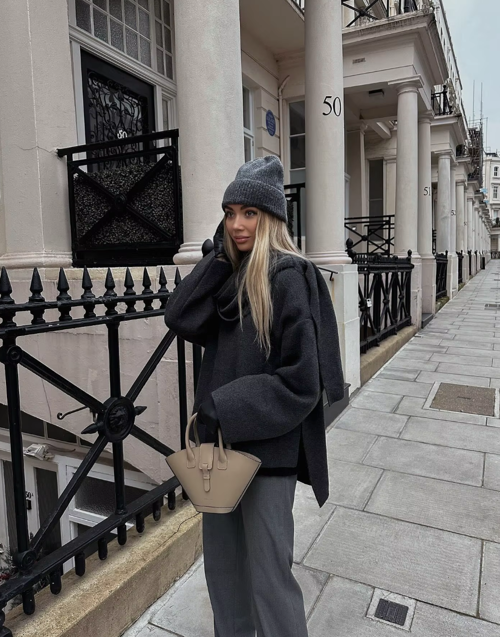 This Shawl Cape Jacket embodies effortless elegance and modern style. Crafted from a luxurious wool-blend fabric, it features a draped shawl collar that adds a touch of sophistication and warmth. The oversized silhouette provides both comfort and a relaxed fit, making it perfect for layering during colder seasons. Its minimalist design, with a single button closure and wide sleeves, gives it a contemporary and versatile look, ideal for both casual outings and more refined occasions.