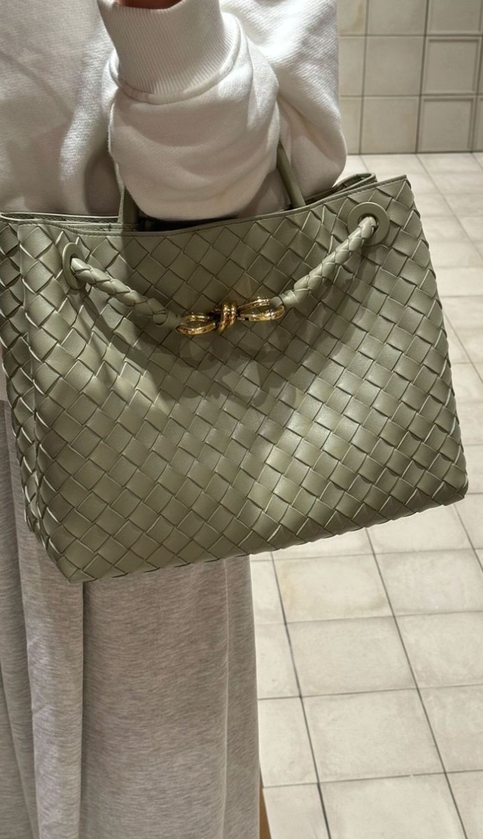 Effortlessly carry your essentials in style with Birch's leather 'Andiamo' tote bag. Crafted in Italy using the label's iconic intrecciato technique, this retro-shaped bag is the perfect size for your phone, wallet, and book. The gold-tone knot adds a touch of elegance to your morning commute.